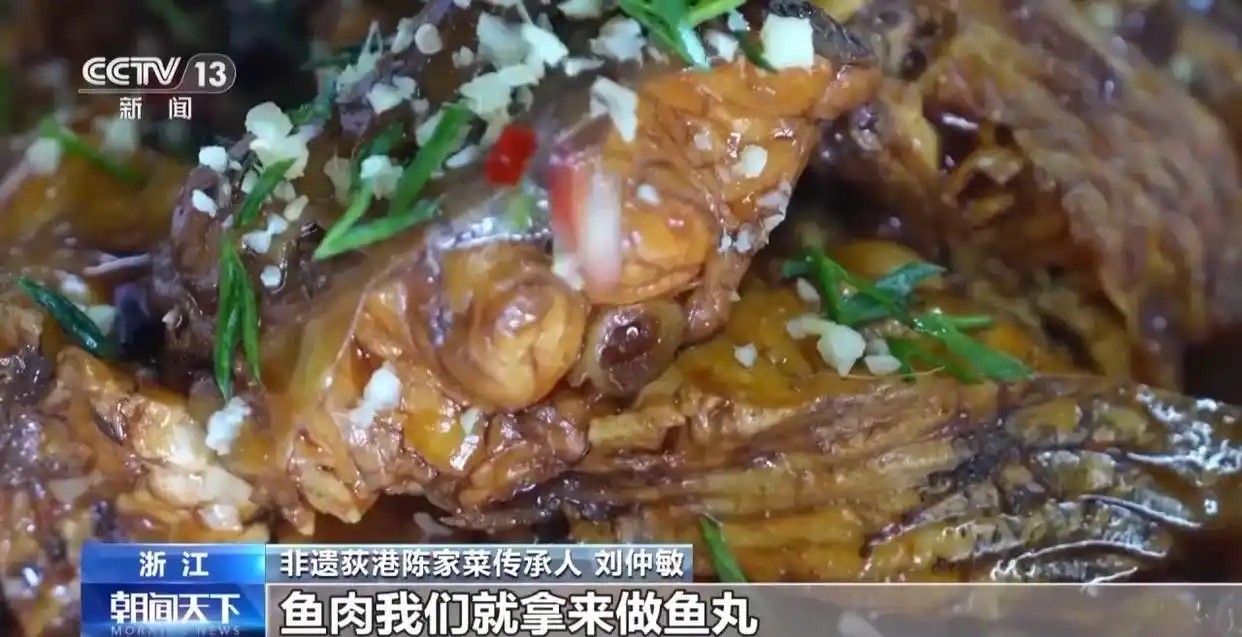 非遗荻港陈家菜传承人 刘仲敏:鱼头我们可以红烧鱼头,鱼肉我们就拿来做鱼丸,鱼骨头我们就用来熬鱼汤,我们还开发了很多菜,大大小小可能有几百种吧。