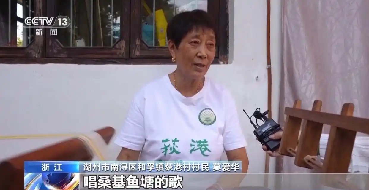 湖州市南浔区和孚镇荻港村村民 莫爱华:教他们把茧子绕上去缫丝,我们还教他们唱歌,唱桑基鱼塘的歌。桑基鱼塘是世界农业文化遗产,我们知道的都讲给他们听的,我们有自己的工作,参与研学的人家一年增加好几千块钱了。