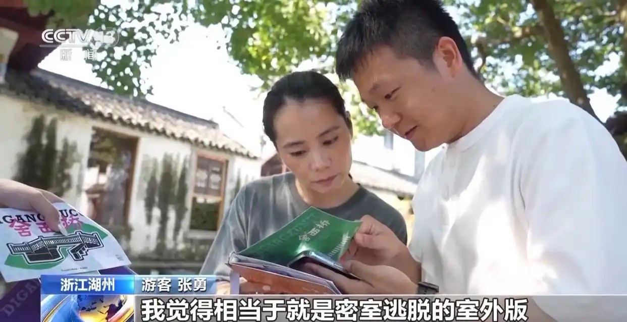 金秋十月,浙江湖州荻港村古村落里,游人在导览人员的带领下开启了一场别样的旅程。大家手持“解谜卡”,一边游览,一边根据谜面寻找藏在实景中的答案,解锁下一步旅程。