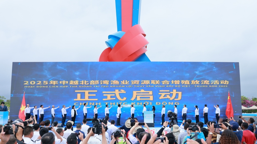 中越联合举行2025年北部湾渔业资源增殖放流活动
