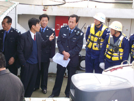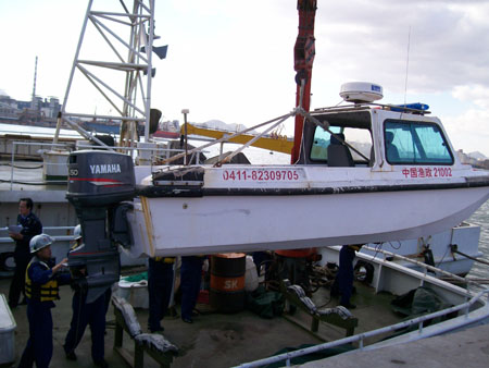 2007年11月1日,辽宁省海洋与渔业厅副厅长卢江宁、渔政处处长李长义及辽宁省渔业海难搜救演练指挥部各成员来到辽宁省大连渔政管理局所属的中国渔政21002号船现场观摩渔业海难应急救援演练。