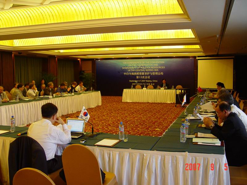 2007年9月4-7日,中白令海狭鳕资源养护和管理公约第12次年会在北京召开,来自美国、俄罗斯、波兰、韩国、日本和中国的50多位代表参加了会议。农业部渔业局副局长柳正出席会议并致辞。会议听取了美国和俄罗斯在白令海各自专属经济区的捕捞状况、资源调查和养护措施等通报,并讨论了公约水域狭鳕资源状况、影响狭鳕资源恢复因素、公约区总可捕量设定以及2008年度科研和探捕计划等问题。