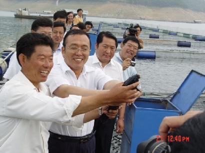 6月21日,辽宁省丹东市委书记薛恒与市委常委秘书长于国平、副市长王力威、宽甸县委书记卢秉宇、县长耿玉礓及市、县渔业部门负责同志,顶着烈日,深入到宽甸满族自治县大西岔镇北江村,与渔业部门一起研究全市淡水渔业发展规划。薛书记认真听取了县、乡和北江村(全省新渔村建设示范村)关于淡水渔业经济发展情况的汇报,对几年来,该市在辽宁省海洋与渔业厅的正确领导和大力支持下,渔业经济有了较快发展给予了充分肯定,对宽甸县立足于40万亩超大型水库资源优势,积极发挥北江村新渔村示范带头作用,大力发展水库增殖、网箱养殖和公鱼加工等产业,所取得的生态效益、资源效益、经济效益和社会效益给予较高评价。