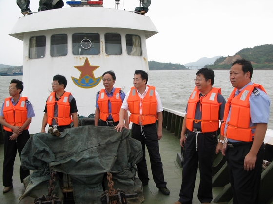 6日10时左右,工作组抵达福鼎八尺门码头。此时,台风外围的影响已经明显,海面上风急雨大,检查组顾不得休息,在福鼎市倪政云市长的陪同下,乘中国渔政35938号船即往八尺门和前歧锚泊区进行海上巡查。