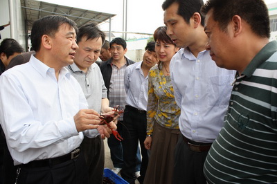 王兆民一行实地查看了洪湖市小港3万亩虾蟹标准化养殖基地、小龙虾苗种选育中心、中央现代农业支持项目—滨湖北合垸“洪湖清水”万亩虾蟹生态养殖建设基地、洪湖德炎水产食品股份有限公司,听取了洪湖市政府和水产局的工作汇报,与德炎等水产加工企业进行了座谈。