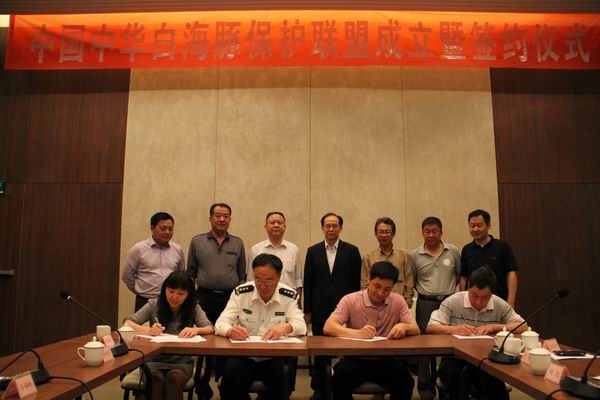 5月12日,由全国水生野生动物保护分会主办,广东汕头大学承办的中华白海豚保护联盟成立暨签约仪式在汕头大学举办。厦门珍稀海洋物种国家级自然保护区、广东珠江口中华白海豚国家级自然保护区、广东江门中华白海豚省级保护区、广西壮族自治区合浦儒艮国家级自然保护区四家保护区签署协议,成立中华白海豚保护联盟,构建和完善中华白海豚保护网络,共同推进中华白海豚物种保护。农业部渔业渔政管理局副局长李彦亮出席会议并讲话。