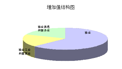 按当年价格计算,全社会渔业经济总产值22019.94亿元,实现增加值10203.55亿元;其中渔业产值11328.70亿元,实现增加值6416.36亿元;渔业工业和建筑业产值5096.38亿元,实现增加值1848.35亿元;渔业流通和服务业产值5594.86亿元,实现增加值1938.84亿元。三个产业产值的比例为51:23:26,增加值的比例为63:18:19。