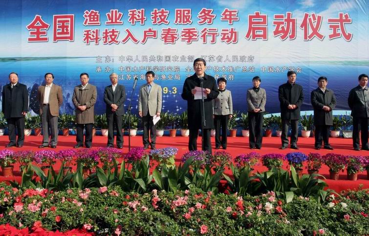 3月25日,由农业部和江苏省人民政府共同主办的全国渔业科技服务年暨科技入户春季行动启动仪式在江苏省宝应县举行。农业部副部长牛盾、江苏省副省长黄莉新出席活动并讲话,农业部渔业局局长李健华主持仪式。