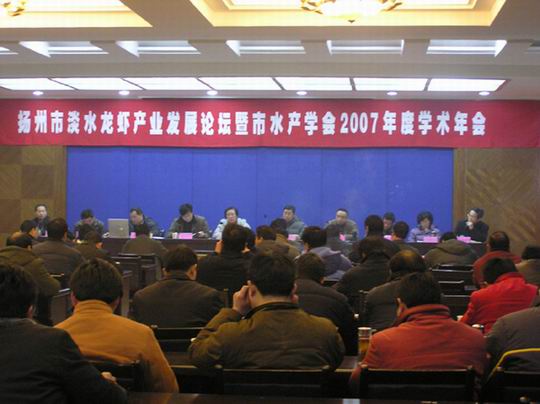为充分交流各地淡水龙虾养殖发展的现状及其技术经验,探讨推进淡水龙虾高效规模化养殖的途径,2008年元月22日,江苏省扬州市农业局和扬州市水产学会共同组织了“扬州市淡水龙虾产业发展论坛暨市水产学会2007年度学术年会”。