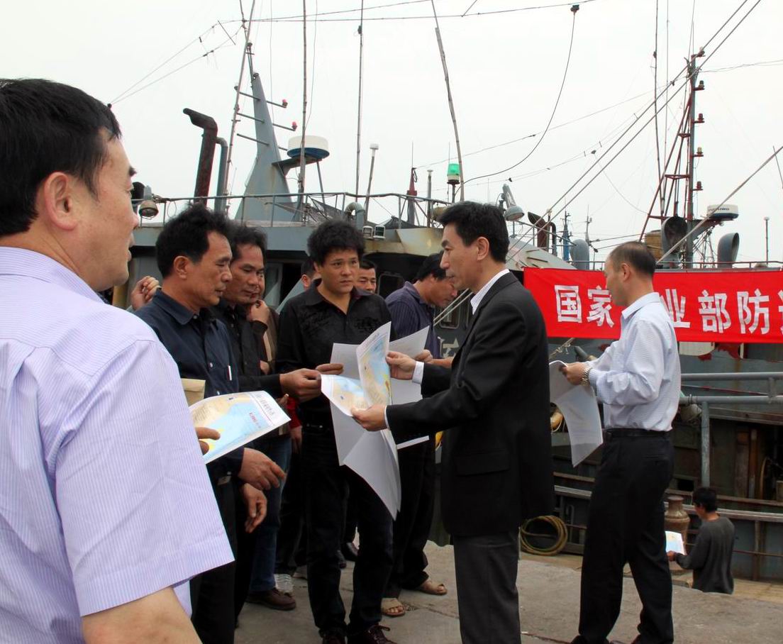 向渔民群众分发东海区渔船防碰撞警示图