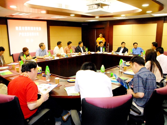 5月14日,在香港渔农自然护理署的大力支持下,2008年赣港淡水鱼贸易洽谈会在香港长沙湾政府合署渔农自然护理署会议室召开。香港渔农自然护理署助理署长梁肇辉到会并致欢迎词。省农业厅副巡视员胡向东主持并讲话。张金保在会上简要介绍了江西水产业发展情况、水产品质量安全监管情况以及供港草鱼、鳙鱼、鳜鱼、乌鳢等淡水产品养殖生产情况,并详细介绍了到会的江西水产企业基本情况。香港港九新界海外渔业批发商商会理事长许汉文先生、香港港九水产商会副会长林家威先生、香港水产业联盟杨运先生等港商在认真听取了情况介绍后,对江苏省重点推介的草鱼、鳙鱼、鳜鱼、斑鳜、黄鳝、泥鳅、乌鱼等绿色、有机水产品兴趣浓厚,与江西盛水实业集团有限公司总经理吴成水、南昌市鄱阳湖农牧渔产业发展有限公司董事长刘金水、江西鄱湖水产股份有限公司副总经理陈金生等进行了商务洽谈,详细询问了草鱼、鳙鱼、鳜鱼、斑鳜、黄鳝等淡水产品的生产基地及规模、内地市场销售价格、产品质量水平和保证能力以及进港运输等情况,并对江西省水产品质量安全监督管理工作及淡水鱼的品质给予了肯定和认同,商定近期择机在深圳市再次榷商草鱼、鳙鱼等淡水产品供港运输等细节问题,届时正式签订淡水鱼供港贸易合同。