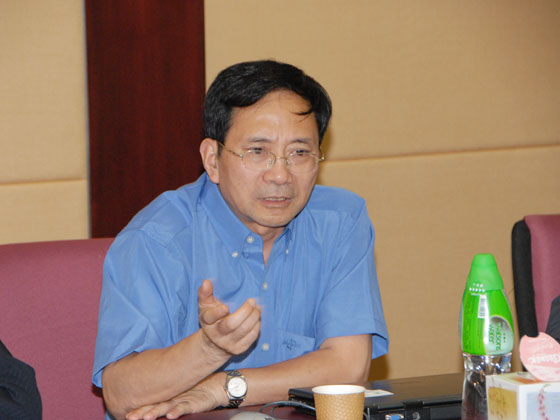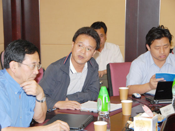 省水产局副局长张金保(左二)在2008赣港淡水鱼贸易洽谈会上发言