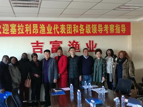 塞拉利昂渔业与海洋资源部部长伊丽莎白·曼斯率领国家渔业代表团一行11人在访华期间,11月4日来到辽宁省东港市,参观考察了东港市吉富渔业有限公司。根据农业部渔业渔政管理局的要求,辽宁省海洋与渔业厅外事外经处处长钱劲参加接待活动。