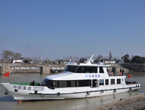 江苏省首艘内陆湖泊100吨级渔政船在高宝邵伯湖首航