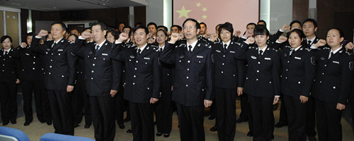 在李富荣局长的带领下,局机关全体干部职工还身着新版渔政制服进行了庄严宣誓。