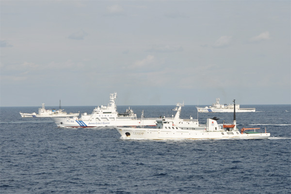 中国渔政310、201编队与日本海上保安厅多艘巡逻船正面对峙