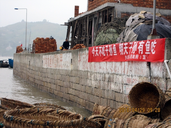 渔村悬挂伏休标语