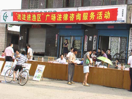7月30日,正值海洋伏季休渔季节,启东市海洋与渔业局联合启东市政法委、人民法院、法制办、总工会、公安局、司法局、劳动局、吕四港镇、东启律师事务所和江苏渔港监督局吕四分局,在吕四渔港船闸前开展了一场丰富多彩的“送法进渔区”法律咨询活动。相关部门紧紧围绕“法治社会、和谐渔区”这个主题,在活动现场着重宣传了《渔业法》、《安全生产法》等法律法规。各单位负责同志和专家们耐心解答了渔民群众的咨询,特别是对于他们比较关注的渔业生产方面的法律法规,做了全面详细的解答。本次活动共发放宣传资料数百份,受到了渔民群众的一致欢迎。