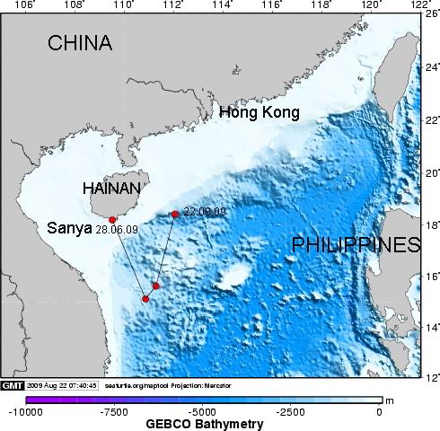 今年6月29日,农业部南海区渔政局联合海南省海洋与渔业厅、香港海洋公园、海南省水产研究所等多家单位,首次在国内开展鲸鲨放生及卫星跟踪。截至到8月22日,已多次接收到鲸鲨南海Ⅱ号发送的定位信息(见附图)。信息显示,南海Ⅱ号鲸鲨自三亚游至西沙群岛一带后,又重新回到海南岛东南方近海。